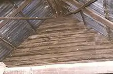The blacksmith's workshop is a rectangular, timber structure. The walls are constructed of split slabs, let into the top plate and rest between battens fixed by wire drawn nails on the bottom plate. All the original plates are axe dressed. The top plates are fixed by iron spikes to a series of axe dressed perimeter posts set in the ground. The roof is corrugated galvanised iron, attached to the original stringy bark sapling farm. The gable ends are hand split weatherboards the floor is earth throughout. The brick chimney extends through the roof.[1]