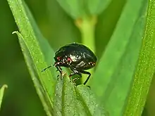 Coptosoma elegans is a species belonging to the family Plataspidae, subfamily Plataspinae. It is often confused for a beetle due to its appearance, but it is a true bug.