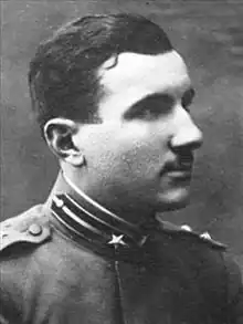 In 1914, he was called to lend military service in the Royal Italian Army, being enlisted and assigned to the infantry arm of the 35th Infantry Regiment.[1] He attended the course for cadet officers, obtaining the grades of second lieutenant in November and was transferred to the 67th Infantry Regiment of the "Palermo" Brigade stationed in Como.[1]