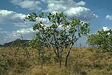Corymbia abbreviata, also known as scraggy bloodwood,[2] is a species of straggly tree that is native to Western Australia and the Northern Territory. It has rough bark, a crown of stiff leaves arranged in opposite pairs, flower buds usually in crowded groups on the ends of branchlets and urn-shaped fruit.