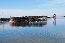 Generally tourist facilities are very basic and rustic. Food service, generally under palapas, open-air restaurants with thatched roofs, is common, but accommodations are sparse. One change to encourage tourism was to replace many speed bumps on Highway 200 and other major roads with devices that make the car vibrate instead to control speed. These roads are now also regularly patrolled by the Mexican federal police, which has been trying to control an increased incidence of highway robbery.[25] Chautengo is a large lagoon in the Cruz Grande municipality. Most economic activity is based on fishing, but there are some palapas and food service at the Pico del Monte beach, which is next to where the lagoon opens to the sea.[25][6] La Bocana is a long beach facing open ocean with a small navigable estuary where the Marquelia River empties into the Pacific Ocean. The area is filled with palapa restaurants as the beach is popular with locals. La Peñitas has two small bays facing the ocean, and one mostly closed off and protected by a strip of land. Accommodations in small bungalows is available along with restaurants. Barra de Tecoanapa is next to the mouth of the Quetzala River. It has beaches facing the ocean. Playa Ventura is in the municipality of Marquelia. This is a small bay facing open ocean with a long beach and medium waves. Unlike other beaches in the area, this is relatively developed with houses, restaurants and hotels made of cinderblock and concrete, painted in bright colors. Hotel services are basic and camping is permitted.[25]
