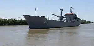 In 1998, after the retirement of the tank landing ship Cabo San Antonio, Bahía San Blas was converted to an amphibious cargo ship and became the main vessel for use by the Argentine Marines.[4] Since 2004, an Argentine contingent was deployed to Haiti under MINUSTAH mandate and she has been used for logistic support making several voyages to the Caribbean island.[9]