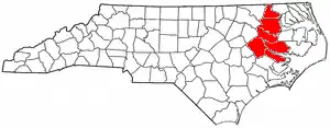 Onslow, Duplin, Wayne, Greene, Lenoir, Jones, Craven, Carteret, and Pamlico counties.