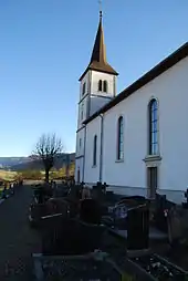 From the 2000 census, 341 or 85.5% were Roman Catholic, while 17 or 4.3% belonged to the Swiss Reformed Church. Of the rest of the population, there were 29 individuals (or about 7.27% of the population) who belonged to another Christian church. There was 1 individual who was Islamic. 17 (or about 4.26% of the population) belonged to no church, are agnostic or atheist, and 8 individuals (or about 2.01% of the population) did not answer the question.[11]