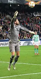 Celtic again won domestic trebles in 2017–18 and in 2018–19. This meant they had won all three competitions for three consecutive years, a feat known as the "treble treble".[147][148] Gordon played regularly during that time but occasional high-profile mistakes, such as in the UEFA Europa League against Fenerbahçe in 2015[149] and Red Bull Salzburg in 2018,[150] posed doubts as to his reliability; he lost his place to Fraser Forster (returning from Southampton on loan) in 2019–20, and made only six first team appearances during that season.[151] He decided to leave Celtic in June 2020, despite having been offered a new contract, as he wanted to play more regularly.[151]