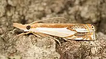 Crambus agitatellus, the double-banded grass-veneer moth, is a moth of the family Crambidae. The species was first described by James Brackenridge Clemens in 1860. Adults are on wing from June to August.