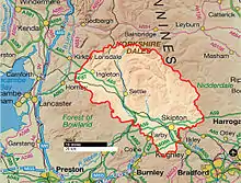 Craven has been the name of this district throughout recorded history.[4] Its extent in the 11th century can be deduced from The Domesday Book but its boundaries now differ according to whether considering administration, taxation or religion.[5]
