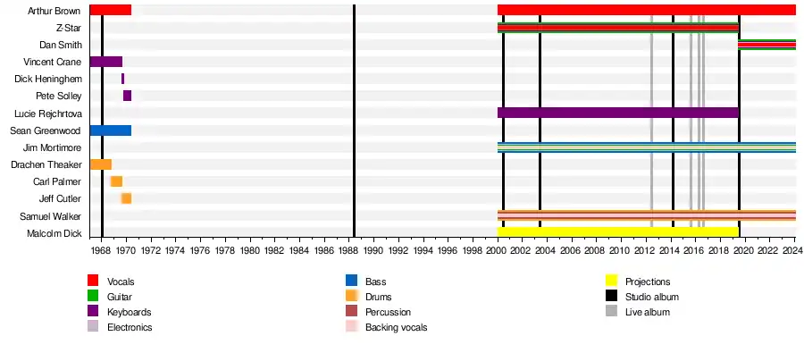 - Arthur Brown – lead vocals (1967–1970, 2000–present)