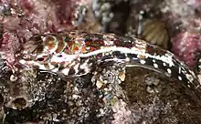 The cryptic triplefin, Cryptichthys jojettae, is a triplefin of the family Tripterygiidae, the only member of the genus Cryptichthys, found around the coast of New Zealand. It length is up to 6 cm.[3] The specific name honours a former staff member at the National Museum of New Zealand, Jorjette Drost, who participated in collecting specimens with Hardy.[4]