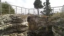 Cuexcomate (Spanish pronunciation: [kweɣskoˈmate]) is an inactive geyser in Puebla city, Puebla state, Mexico. The sinter cone that the geyser built up around its vent is 13 metres (43 ft) tall and has a diameter of 23 metres (75 ft). A central crater within the cone is up to 8 metres (26 ft) wide and 17 metres (56 ft) deep (extending 4 metres (13 ft) below ground level).[1]