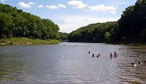 Cuivre River State Park is a public recreation area covering more than 6,400 acres (2,600 ha) northeast of the city of Troy in the Lincoln Hills region of northeastern Missouri, United States. The state park's rugged landscapes range from native grasslands and savannas to limestone bluffs overlooking forested hills. The park offers an extensive system of hiking trails plus swimming and camping facilities and is managed by the Missouri Department of Natural Resources.[5] It encompasses the Lincoln Hills Natural Area (1872 acres)[6] and two designated wild areas: Big Sugar Creek (1675 acres) and Northwoods (1082 acres).[7][8]