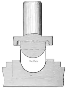 The curling die is designed to curl a material of specific thickness. Dies are generally made of hardened tool steel because of the amount of wear caused by the operation. Their smooth, rounded cavities are often lapped and polished to help curl the material uniformly.