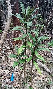 Cyanea stictophylla is a rare species of flowering plant in the bellflower family known by the common name Kaiholena cyanea. It is endemic to the island of Hawaii, where it is known only from the rainforests of Mauna Loa.[1] It is a federally listed endangered species of the United States. Like other Cyanea it is known as haha in Hawaiian.[2]