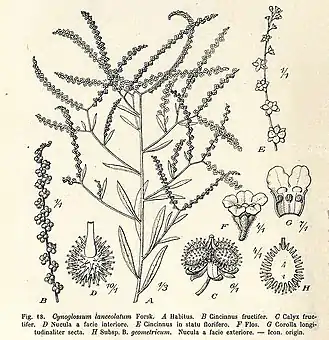 Cynoglossum lanceolatum Forssk. is closely related to and grades into Cynoglossum coeruleum Hochst. ex A.DC. It is a much-branched biennial plant, occurring widely with an anthropogenic distribution, harvested from the wild and used as both food and medicine.[1] This species was first described by the Swede Peter Forsskål in 1775 in Flora Aegyptiaco-Arabica 41.