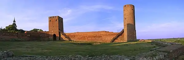 The Czersk Castle was built at the turning point of the fourteenth and fifteenth century by Duke Janusz I, after the Masovian land became part of the Kingdom of Poland under the rule of Queen Bona Sforza.[1] The castle had three towers, with one of them—being four-sided—used as the main gate house.[2]