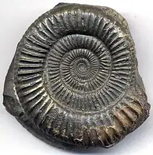 The subfamily Dactylioceratinae comprises early Jurassic ammonite genera that lived during Upper Pliensbachian to Upper Toarcian stage. These dactylioceratids existed from Margaritatus ammonite Zone, when they have evolved from Reynesocoeloceratinae and died out in Variabilis Zone without leaving any descendants.[1]