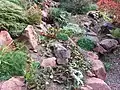 The Rock Garden is located centrally on campus between College Road, and Rock Garden Road.[40] It gifted to the Agricultural Campus by the Friends of the Garden.[41] Featuring uncommon plants in a very sophisticated layout, the Rock Garden invites for exploration, relaxation, and offers quiet outdoor study areas (wooden and stone seating).[42] The garden is supported and maintained through the Friends of the Garden and the Nova Scotia Rock Garden Club.[43] 450 tons of local red granite was utilized to create the stunning landscape.[42] Beside more expected rock garden plants, one can find beside many others: Cacti, a Ginko biloba tree, and a beautiful Japanese maple tree. Visitors are asked to stay on the graveled and marked walking paths, and dogs are prohibited.