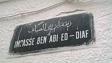 Metallic plaque indicating the Ibn Abi Diaf dead end.