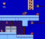 NES gameplay. The heart in the top left hand corner is the player's life reserve. The letters under it represent the current gas powerup.