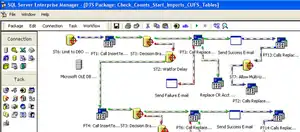 Each connection and task in DTS Designer is shown with a specific icon. These icons are joined with precedence constraints, which specify the order and requirements for tasks to be run. One task may run, for instance, only if another task succeeds (or fails). Other tasks may run concurrently.