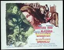 Daughter of Darkness is a 1948 British film, with macabre overtones, directed by Lance Comfort and starring Anne Crawford, Maxwell Reed and – in the central role – Siobhán McKenna. Released in January 1948, it was based on a then ten-year-old play by Max Catto called They Walk Alone.[2] An expensive film for its day, it was shot at Riverside Studios, Hammersmith, London, (known at that time as Alliance Studios) and on location.[3][4] McKenna was offered a Hollywood contract following her memorable performance, but heeded the counsel of Laurence Olivier to remain in theatre work.[5]