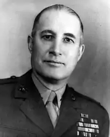 In this capacity, Stafford was responsible for Corps personnel matters and took part in the amphibious landing during Battle of Iwo Jima in February 1945. He distinguished himself and received the Legion of Merit with Combat "V".[6][7]
