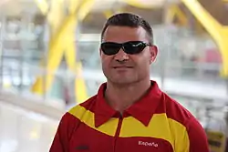 In 2002, he competed in the Valencia Athletics Open, which was organized by the Federació d'Esports Adaptats de la Comunitat Valenciana (FESA).[13] He qualified for and competed in the 2011 IPC Athletics World Championships where he was one of thirty-two competitors representing Spain.[14] He competed in the 2012 Spanish national championships held in the Basque country, where he set a Paralympic B qualifying standard in the shot put with a distance of 13.10 meters.[15] In 2012, he was a recipient of a Plan ADO €23,000 athlete scholarship with a €3,000 reserve and a €2,500 coaching scholarship.[16] His ability to compete at the highest level was also made possible because of sponsorships from groups like Council of the City of Valencia and Moncada.[17] In May 2013, he competed in the Spanish national championships, where he earned a gold medal in the shot put and another in the discus.[18] Prior to the start of the London Games, he trained with several other visually impaired Spanish track and field athletes in Logroño.[19] In July 2013, he participated in the 2013 IPC Athletics World Championships.[20]