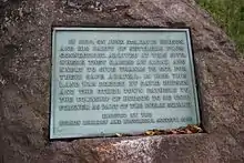 Hudson's home, built in 1805–06, was the first frame house in town. Two-and-a-half stories tall, it measured 40 by 30 feet (12.2 m × 9.1 m). In addition to housing Hudson's family, it was the town's first post office, tavern, and courtroom. The courtroom was used for trials heard by justice of the peace Arthur St. Clair, whom Hudson appointed in 1800 in one of his first actions after founding the town.[35] Hudson served as the township's first postmaster, holding the office until he was removed from the position in 1829 after opposing Andrew Jackson in the 1828 presidential election.[36] The house was also a frequent source of food and shelter for travelers, including fugitive slaves on the Underground Railroad, due to the township's central location in the Western Reserve.[37] David Hudson Jr., Hudson's son, recorded the names of hundreds of people who passed through the house in his diaries.[38] Hudson's wife, Anna, gave birth to the last two of their nine children in the township.[38][39] David Jr., the youngest,[38] was the last in a line of six generations of youngest Hudson sons named David.[40] Anna Hudson died in August 1816. The following January, Hudson married Mari Robinson.[39] Hudson died on March 17, 1836, at 75 years of age.[41]