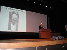 Griffin delivered several lectures and was interviewed by Alex Jones on his radio show featuring 9/11 conspiracy theories.[29] A lecture entitled 9/11 and American Empire: How should religious people respond?, delivered on April 18, 2005, at the University of Wisconsin–Madison, was aired by C-SPAN.[30] At the end of one of his lectures entitled 9/11: The Myth and the Reality Griffin was asked why a theologian would be one of the primary speakers for the cause (of questioning the official version of events), and was asked to explain whether he saw any religious or spiritual implications of 9/11, to which he replied: "If the religions of the world are correct ... the Divine cares about ... the long-term good of the world ... And wouldn't want ... nuclear wars that would decimate all life on the planet, wouldn't want global warming to continue ... so I'm convinced that this administration ... is the most dangerous administration we've ever had for the future of this country and the future of the world, and if trying to save god's planet is not a religious issue, I wouldn't know what was."[31]
