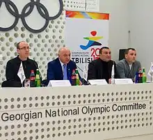 David Zolkwer (left) speaking at a press conference ahead of the Georgia 2015 European Youth Olympic Festival.
