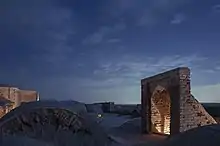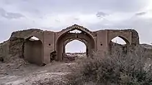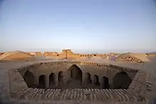 Deir-e Gachin Caravansarai is a historic caravansarai in Iran, located in the center of Kavir National Park.[1] Because of its history and unique qualities, it is sometimes called the "Mother of Iranian Caravansarais".[2] It is located in the Central District of Qom County, 80 kilometers north-east of Qom (60 kilometers into Garmsar Freeway) and 35 kilometers south-west of Varamin. This monument was registered in Iran's National Heritage List on September 23, 2003.[3] The caravanserai was originally built in the Sasanian era[4][5] and underwent restorations and reconstructions in the Seljuk,[6][7] Safavid[4][8] and Qajar[4][9] eras. Its current form belongs to Safavid era.[8] This caravanserai is situated on the ancient rout from Ray to Isfahan.[10]