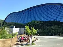 The Kyushu National Museum opened on October 16, 2005. A wood and glass building in a hilly landscape, it hosts collections of Japanese artifacts related to the history of Kyūshū.