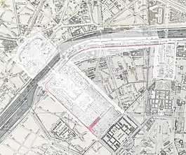 The track was designed by Monsieur Alphand, the general manager of the works, who commissioned Antoine Gaillot and Paul Gallotti of Gaillot et Cie to build the track under the supervision of Monsieur Lion, the exhibition's engineer. The works were led by the Deputy Chief Engineer J. Charton, who was responsible for the metalworking and dealt in particular with the construction of the railway on the Champ de Mars.[3]