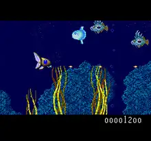 Deep Blue[lower-alpha 1] is horizontally scrolling shooter for the TurboGrafx-16 published in 1989. The player controls a submersible fighter shaped as a freshwater angelfish that must fight through waves of mutated marine life.