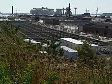 Wastewater from the 43 communities in the Boston area served by the MWRA reaches the plant through four tunnels. Three pump stations with a combined capacity of 1270 million gallons per day (mgd) lift the wastewater about 150 feet to primary treatment clarifiers that use gravity to remove about half of the pollutants. The next stage, secondary treatment, uses pure oxygen to activate microorganisms that consume organic matter. Deer Island cryogenically generates 130 to 220 tons of oxygen per day for this purpose. Sludge and scum from the primary and secondary treatment stages are thickened and fed to twelve 130 foot high egg-shaped digesters. Methane gas produced by the digestion process is burned to make steam which is fed to a turbine that generates about 3 megawatts of electricity and provides heat for the treatment processes and keeping buildings warm. (Additional on-site power began generation by two 600 kW wind turbines in 2009).[9] Digested sludge is then sent across the harbor via a tunnel to a pelletizing plant at the Fore River Shipyard in Quincy. The output is sold as fertilizer and shipped to customers by rail and truck.[10]