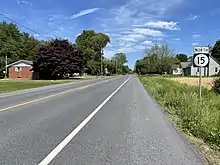 By 1920, the roads that comprise present-day DE 15 existed as county roads.[8] Bunker Hill Road was paved by 1932, with Levels Road being constructed as a state highway by this time.[9] Four years later, the segment between DE 12 and US 13, Brenford Road, a portion north of DE 6, and Bethel Church Road were paved,[10] while Kenton Road was paved three years later.[11] Paving was completed on the sections between DE 14 and Carpenter Bridge Road and from DE 8 to Kenton Road by 1942, and the entire segment between Clayton and Middletown excluding a portion of Blackbird Station Road.[12] The remainder of the road between Milford and Canterbury, the portion between Woodside and DE 10, the portion between Wyoming and Dover, and the segment of Choptank Road between Bohemia Church Road and Bethel Church Road were all paved by 1952.[13] The remainder of the route between Clayton and Middletown was paved two years later.[14] By 1957, paving was completed on the remainder of Choptank Road.[15] The section between Woodside and Wyoming was fully paved by 1959.[16] The Mt. Friendship Road part of the current route was paved by 1964.[17] Two years later, the paving of present-day DE 15 was completed when Alley Corner Road was paved.[18]