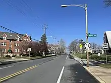 The Wilmington Turnpike Company was founded on October 23, 1809 to build a turnpike from Wilmington to the Pennsylvania border, connecting to the Gap and Newport Turnpike. The turnpike was completed in 1817 at a cost of $39,549.97.[6] The turnpike became known as the Lancaster Pike and was surfaced with stone. The Wilmington Turnpike Company operated the Lancaster Pike until 1877 when they abandoned the road. The turnpike's charter was repealed and the road was then under the control of the county levy court.[6][7] The road leading from Wilmington to the Wilmington-Penns Grove Ferry across the Delaware River to Penns Grove, New Jersey, was completed as a state highway by 1931.[8]