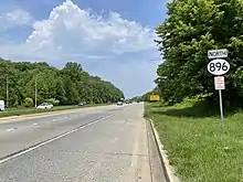 Delaware Route 896 (DE 896) is a state highway located in New Castle County, Delaware. The route runs from U.S. Route 13 (US 13) in Boyds Corner north to the Maryland border northwest of Newark, where the road becomes unsigned Maryland Route 896 (MD 896) briefly before heading into Pennsylvania as Pennsylvania Route 896 (PA 896). The route heads west from US 13 before turning north along with DE 71 in Mount Pleasant, crossing the Chesapeake & Delaware Canal on the Summit Bridge. After the bridge, DE 71 splits off to the east and the road continues to Glasgow, where it comes to an intersection with US 40. DE 896 continues north and interchange with Interstate 95 (I-95) before reaching Newark, where it bypasses the University of Delaware to the west by following DE 4, Elkton Road, and South Main Street. DE 896 comes to downtown Newark and continues northwest to the Maryland border. DE 896 has a business route, DE 896 Business (DE 896 Bus.), that passes through Glasgow, and had an alternate alignment south of Glasgow called DE 896 Alternate (DE 896 Alt.).