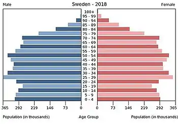 Other Nordic countries face the same situation. Denmark, Norway, Finland, and Iceland all saw their fertility rates decline in the late 2010s to between 1.49 and 1.71 from previously near replacement level, although their economies had already recovered from the Great Recession by that time. "The number of childless individuals is growing rapidly, and the number of women having three or more children is going down. This kind of fall is unheard of in modern times in Finland," family sociologist Anna Rotkirch told AFP.[58] According to Statistics Finland, the total fertility rate of that country in 2019 was 1.35, the lowest on record.[59] Causes for this decline include financial uncertainty, urbanization, rising unemployment, declining median income, and high cost of living. Falling fertility rates jeopardize the much prized Nordic welfare systems.[58][60] Generous parental benefits, including subsidized childcare, have proven ineffective in halting the demographic decline.[13] According to a 2020 report from Nordic Council of Ministers, the Finns were aging at a faster rate than any of their counterparts in the Nordic region.[60] Statistics Finland predicted in 2019 that given current trends in fertility and migration, Finland's population would begin to decline by 2031.[61]