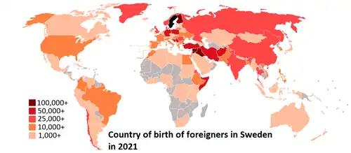 30. "Population statistics – Population in Sweden by Country/Region of Birth, Citizenship and Swedish/Foreign background, 31 December 2020". Statistiska Centralbyrån. Archived from the original on 19 December 2016. Retrieved 21 December 2021.