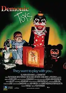 Demonic Toys is a 1992 American direct-to-video horror comedy film produced by Charles Band's Full Moon Entertainment and directed by Peter Manoogian. The film centers on a police officer who is terrorized by the title characters after a botched arrest. Like many other Full Moon releases, Demonic Toys never had a theatrical release and went straight-to-video in 1992. In the United States, the film was given an "R" rating for violence, language, and brief nudity. The franchise was created by Charles Band.