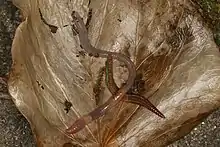 Dendrodrilus rubidus is a species of earthworm in the family Lumbricidae. It is native to Europe, and it is a widespread introduced species,[1] occurring on every continent except Antarctica, as well as many islands.[2] It is often invasive.[1] It is sometimes used as fishing bait, and is marketed under many nonspecific names, including red wiggler, jumping red wiggler, red trout worm, jumbo red worm, and pink worm.[1][3] Other common names include bank worm, tree worm, and gilt tail.[4]