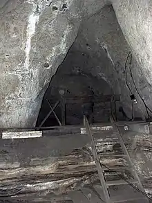 In the 1970s, Russian scientists discovered paleoarcheological remains in the cave that led to further explorations.[2] So far, 22 strata have been identified, with archeological artifacts that cover the time from Dyonisiy back to about 125,000–180,000 years ago.[10] The dating of the strata was accomplished by the use of thermoluminescence dating of sediments, or, in some cases, radiocarbon dating on charcoal.[10]