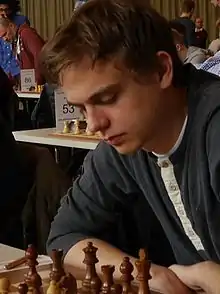 He earned his international master title in June 2012 and in November participated in the World U16 Chess Championship, finishing sixth.[6] He finished second in the German Chess Championship in November 2014 and in December achieved the final norm needed for his grandmaster title.[7] He was officially awarded the title in 2015. At the 2015 Gibraltar Open, held from 27 January to 5 February 2015, he scored 7½/10 (+6–1=3) for a performance rating of 2757. In November, he played on board 5 for Germany at the European Team Chess Championship, scoring 3½/6 (+1–0=5).[8]