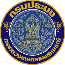 Thailand's Department of Fisheries (Abrv: DOF; Thai: กรมประมง, RTGS: krom pramong), part of the Ministry of Agriculture and Cooperatives, is responsible for the promotion of the Thai fishing industry while ensuring the sustainability of aquaculture and capture fisheries. It conducts, compiles, and disseminates research and technologies to further those aims. Its mission statement makes no mention of illegal, unreported and unregulated fishing (IUU), the responsibility of other agencies such as the Ministry of Labour.[2]