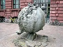 The building faces the Domshof, the market square, in Bremen and just in front of the bank is a sculpture based on a model of the world. Titled Unser Planet (Our Planet), it was made by the German sculptor Bernd Altenstein.[5]