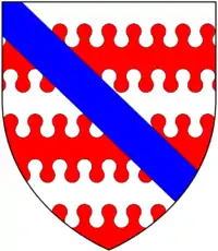 Amory Barry nebulé of six argent and gules, over all a bend azure Whitechapel, Bishops Nympton