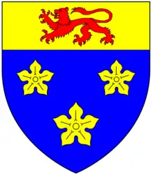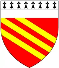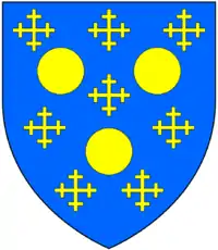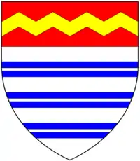 Clapham[10] Argent, on a bend azure six fleurs-de-lys or, two, two and two Barnstaple; (Beamsley Hall,[lower-alpha 9] Yorkshire)