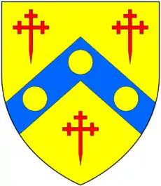 Blackall[lower-alpha 4] Paly of six or and sable on a chief gules three bezants Cowick; Hampsted, Totnes