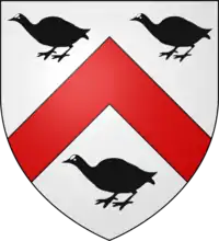 Bellot Argent, on a chief sable three cinquefoils of the field Downton[lower-alpha 3]